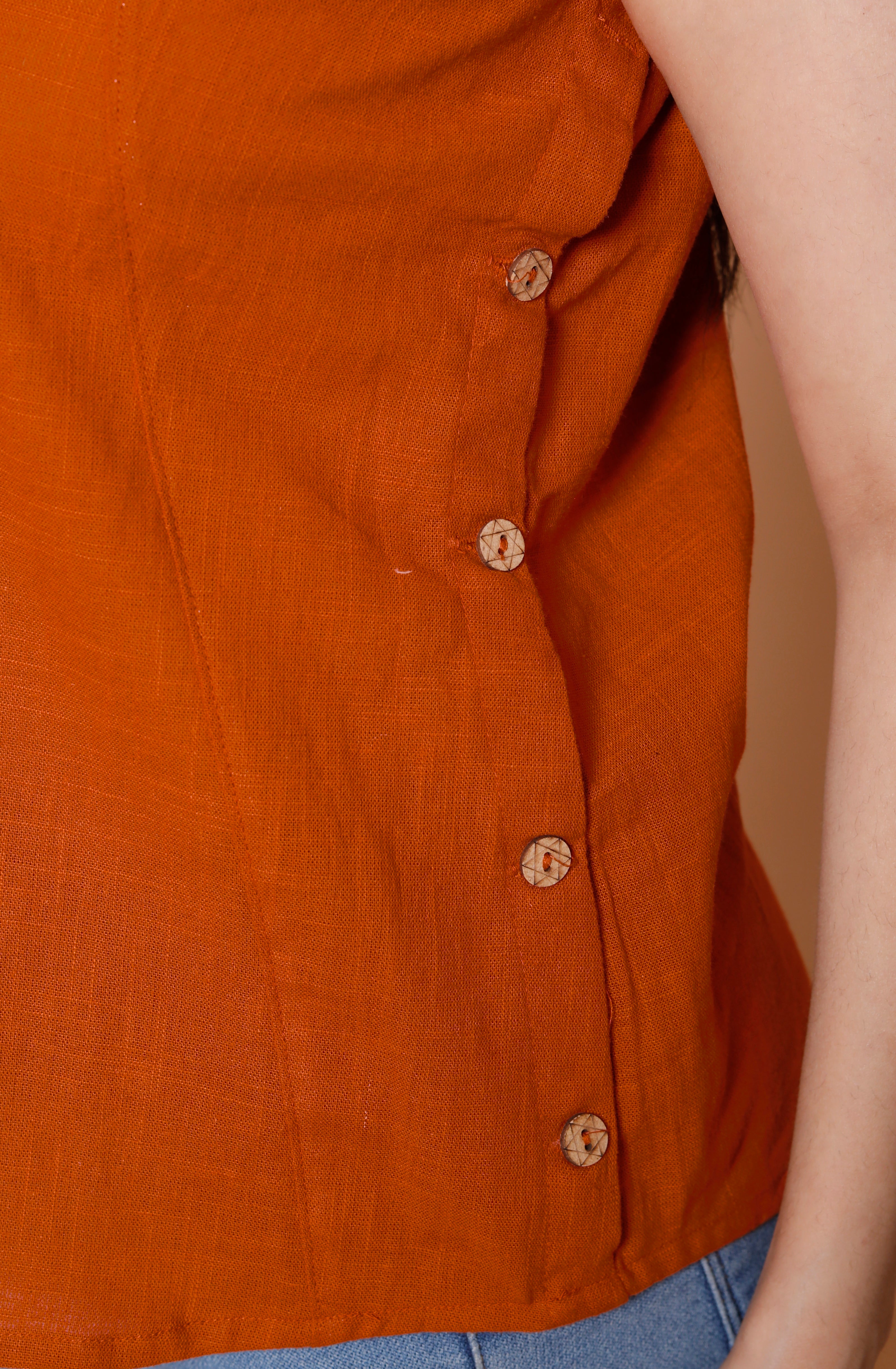 Step into the warmth of autumn with our Rustic Ember Top. This sleeveless marvel, drenched in a captivating rust orange hue reminiscent of glowing embers, is designed to add a vibrant touch to your wardrobe. Crafted from soft, breathable fabric, it offers both comfort and style for any season.