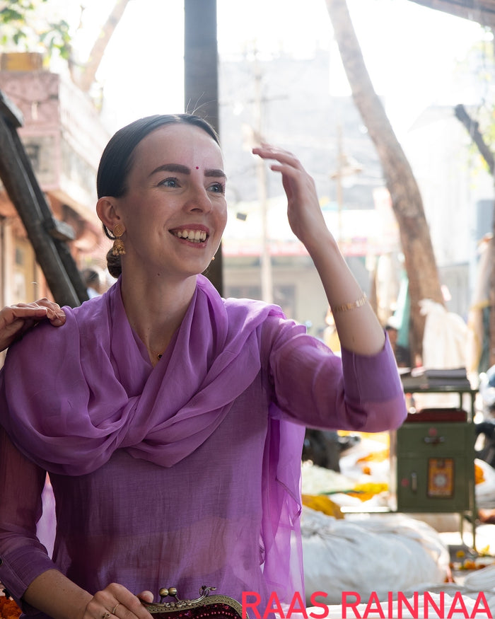 Step into a world where tradition flows as effortlessly as twilight. Saanjh Ke Rang is a curated collection of handcrafted Chanderi suits, inspired by the soft hues of the setting sun.