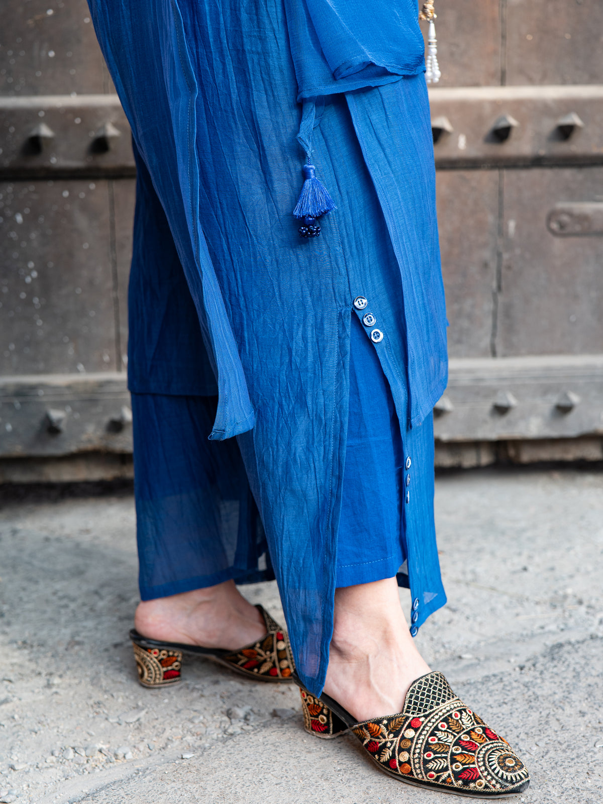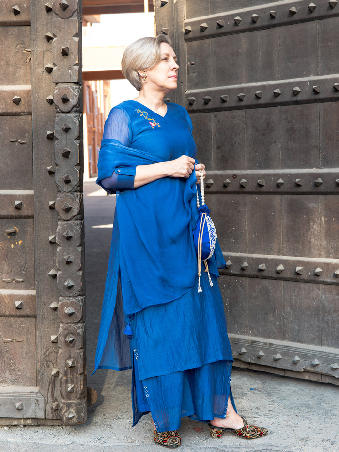 Step into a world where tradition flows as effortlessly as twilight. Saanjh Ke Rang is a curated collection of handcrafted Chanderi suits, inspired by the soft hues of the setting sun.